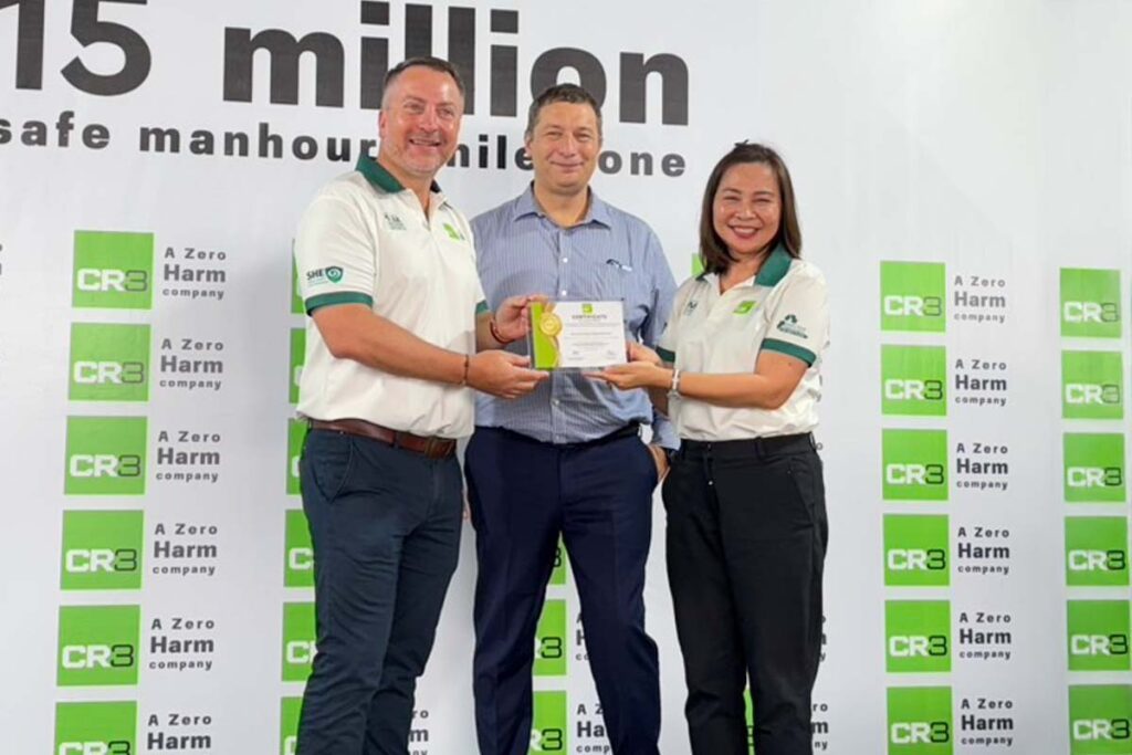To mark this auspicious occasion, a celebration event was held at the CR3 Thailand headquarters in Rayong province. During the event, senior management from CR3 delivered speeches expressing their sincere gratitude to the workforce for their exemplary efforts in reaching this incredible milestone. Individual awards were also presented to those employees who have demonstrated outstanding commitment to safety in their roles.